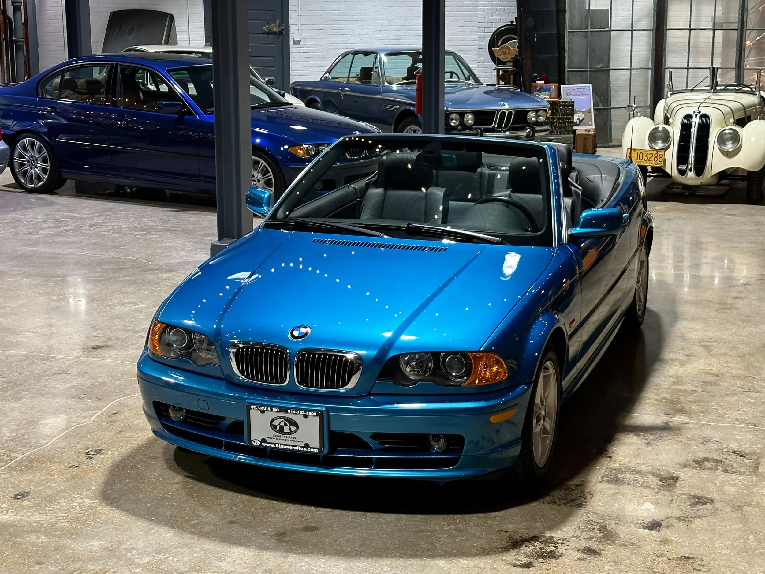 Immaculate 325Ci Cabrio finished in very rare, Individual-spec Atlantis Blue Metallic. Having sold this car once before to long-term customers, we know it well....stock as a rock and drives exactly as it should. The interior is similarly clean, with ZHP-spec silver cube trim adding a touch of brightness to the black upholstery. With new tires, radiator, front brakes/fluid flush and a fresh oil service, this car is ready for weekend top-down cruising, daily driving, or both.